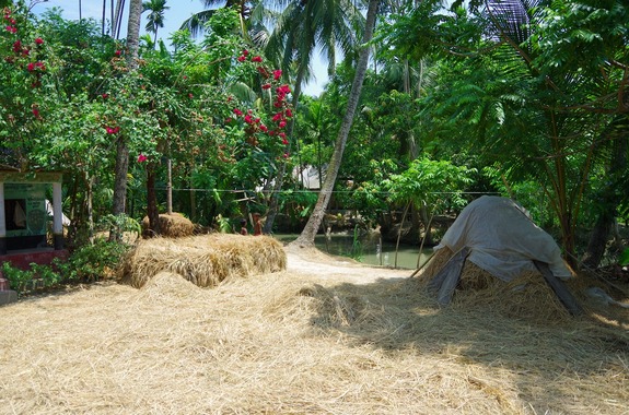 (川や緑に囲まれた農村地域。移動にも小舟を使います。)