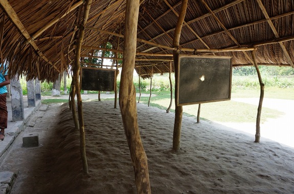 (村人たちの手で建てられた仮校舎の様子。現在、校舎の老朽化が