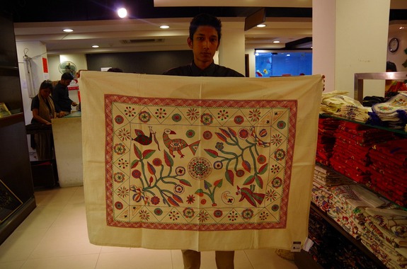 ノクシカタ・・・ノクシはベンガル語でデザインを意味し、カタは布を意味します。手作りで作られるバングラデシュ手工芸品の代表と言っても過言ではないほど有名です。