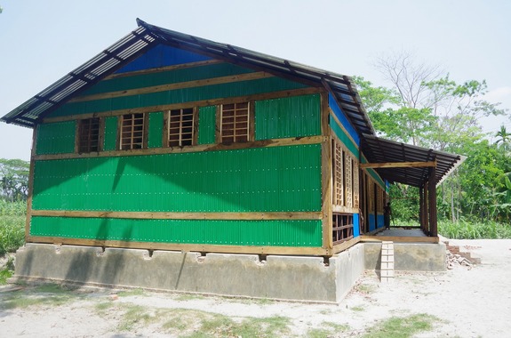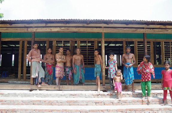 図面を読むことが出来ないため、図面と異なる部分が多々あり、色使いもベンガル人特有の色使いになってしまっていますが、村人たちが一生懸命考えて建設に取り組んでいます。