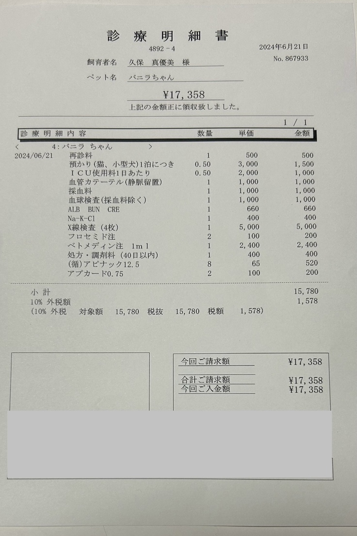 ご支援金はすべてバニラの手術費、通院費とさせていただきます。