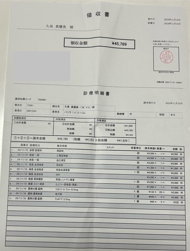 ご支援金はすべてバニラの手術費、通院費とさせていただきます。