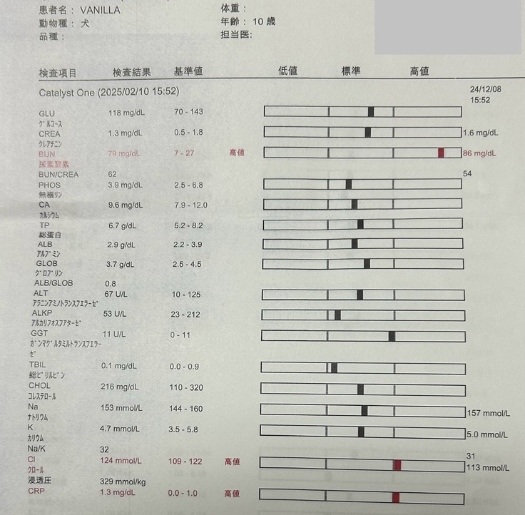 腎臓数値はかかりつけ病院では一度も測定しておらず療法食のみでの対処。