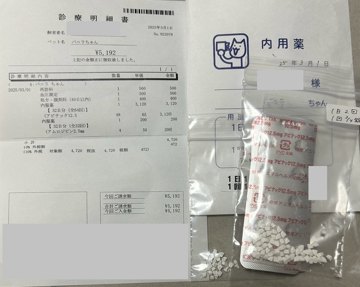 この1年でバニラの病院代だけで約250万程かかりました。皆様にご支援いただいた(手数料差引後金額)金額を差引しても87万程必要となりました。