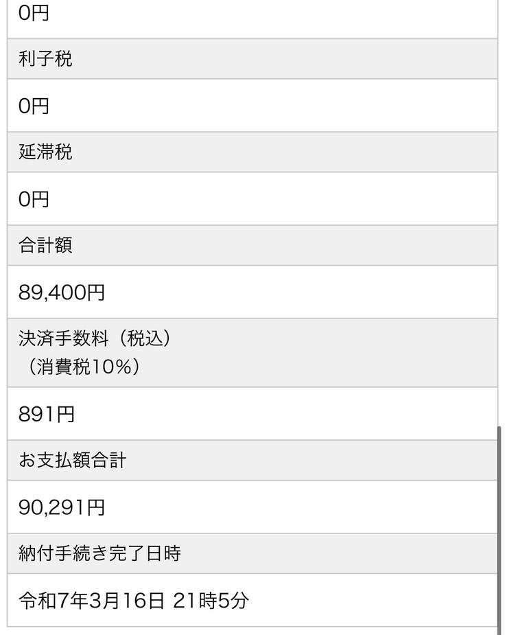 クレジットでとりあえず支払いして後で分割にするため本当にギリギリになりましたが無事支払いを完了させる事ができました。