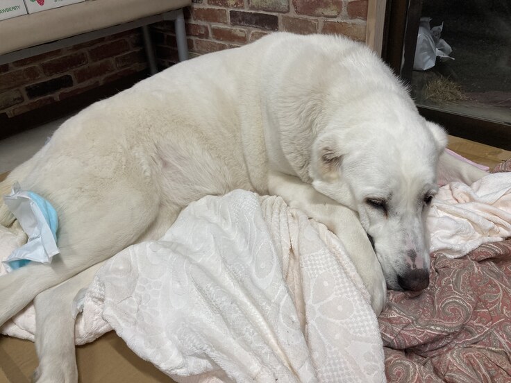 後日、先生よりCT,MRIを撮り、詳しい損傷の程度を調べたほうがよいとのことでしたが、超大型犬のため東京の病院でないと撮れないとのご連絡でした。