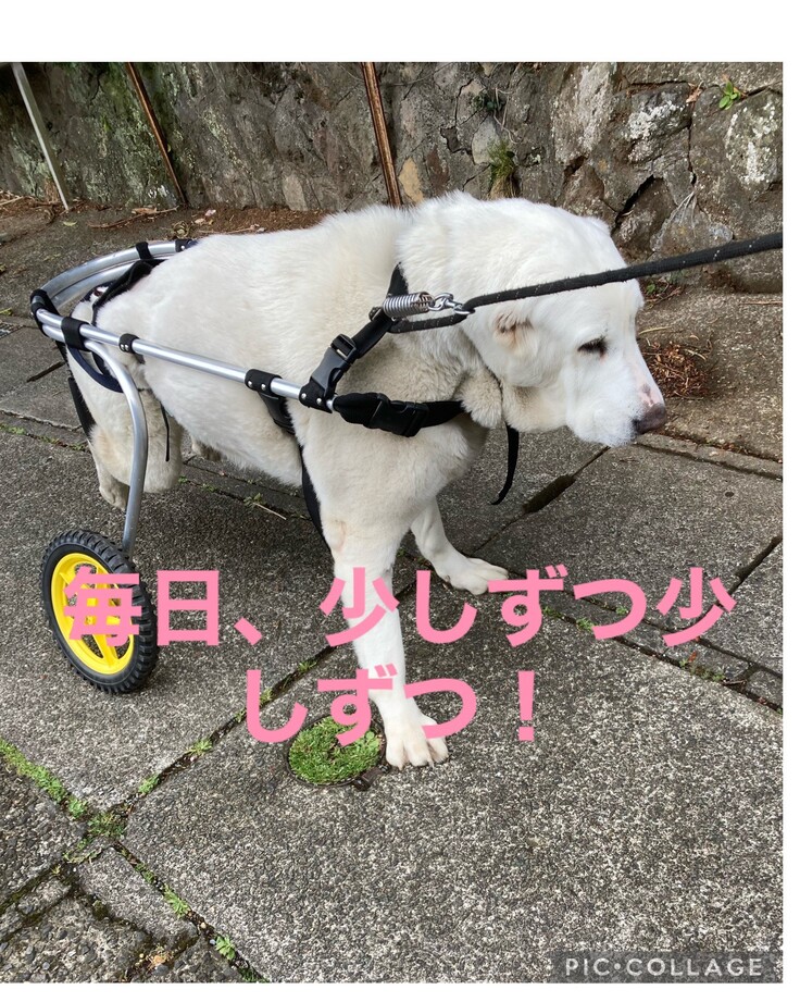 今は少しずつですが、前脚の筋肉が落ちないように車イスでのリハビリを頑張っています。