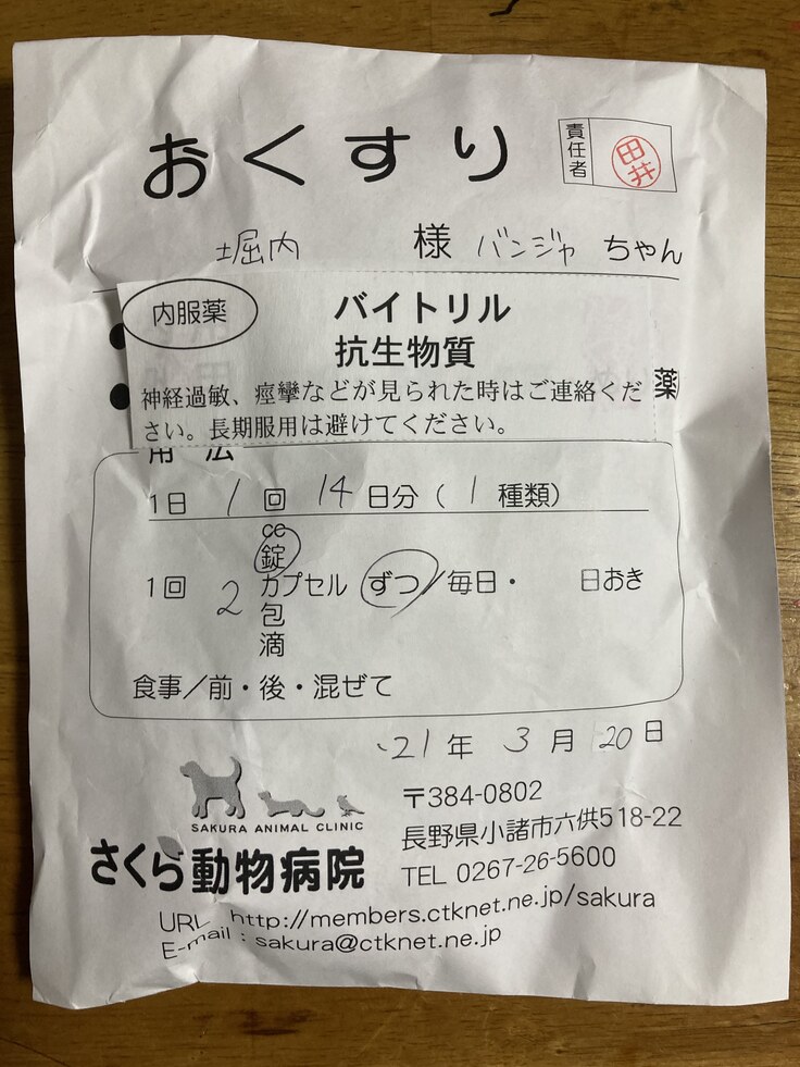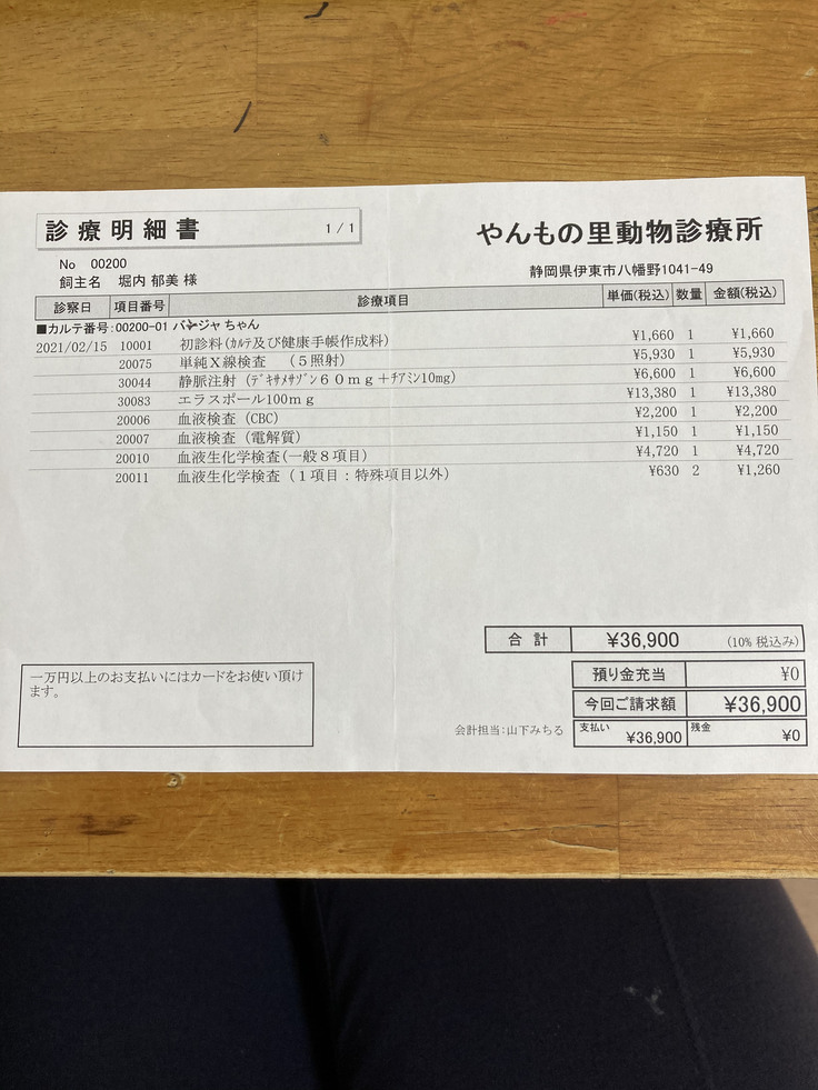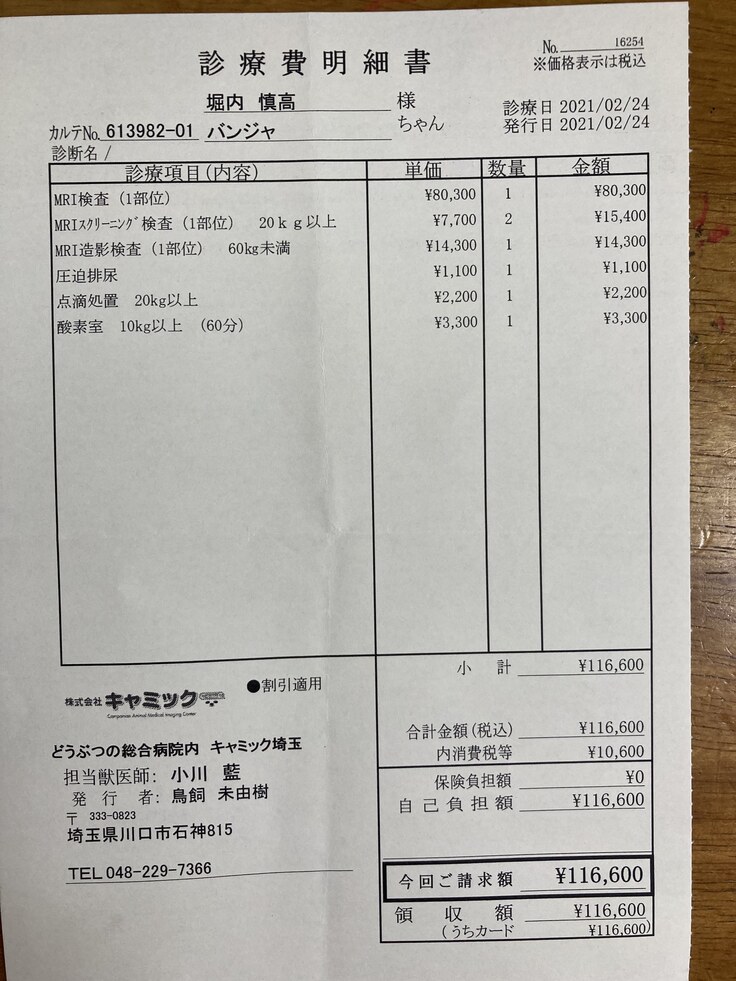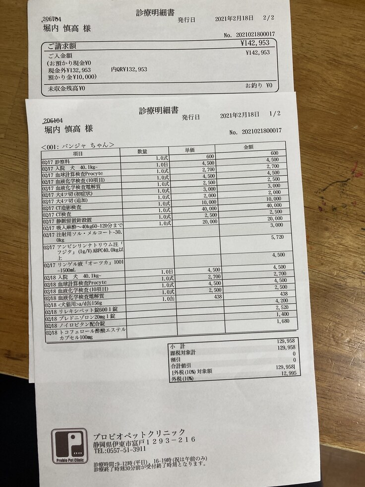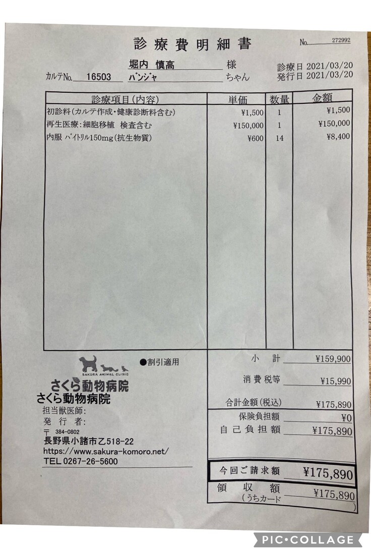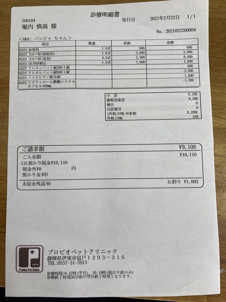 ありがたく全てバンジャの治療費に充てさせていただきます。