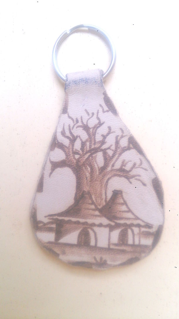 山羊の革にバオバブと働く女性がモチーフの壁掛けです。
