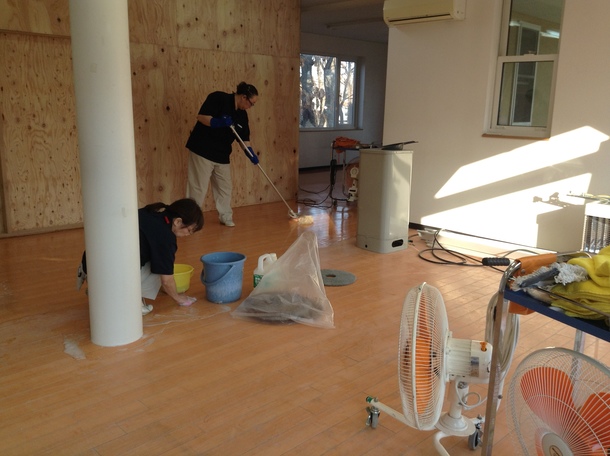 引っ越しを1週間後に控えて、昨日はボランティアスタッフの協力で、窓ふき、すす払い、ステンレス磨きなどをしました。その後はプロの方の床掃除とワックスがけ、すべてボランティアです。プロの技術で見違えるほど、床がピカピカになりました。