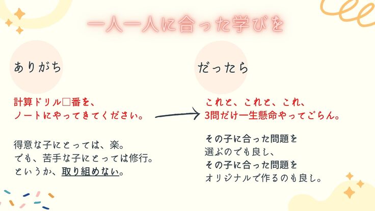 すべてに共通するモットーは、「一人一人に合った学びを」です。