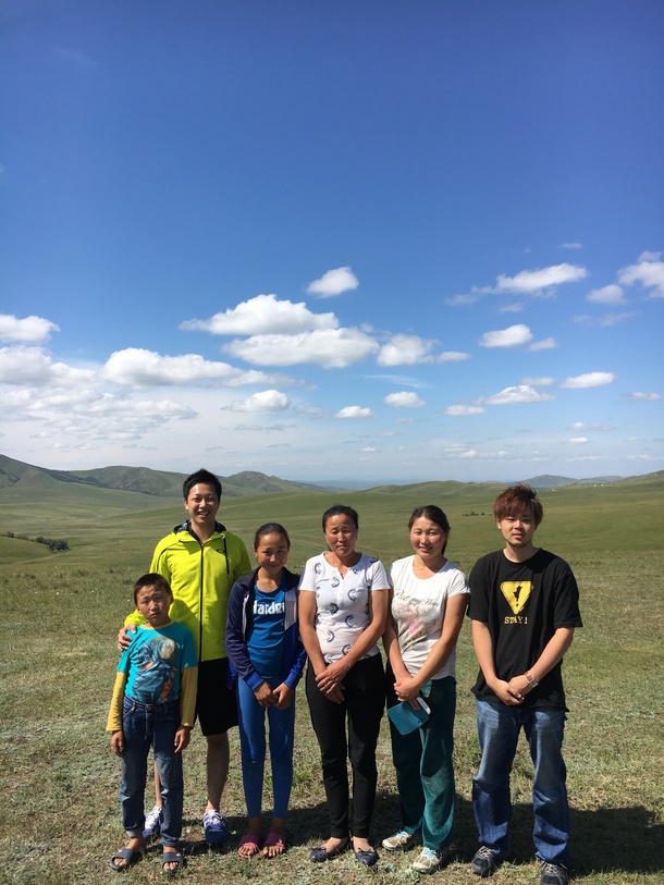 お世話になったご家族!!右端は、この日から1週間遊牧民生活を体験する東京からきた大学生!!