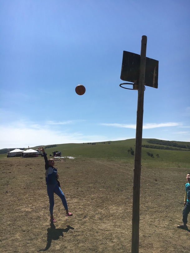 バスケットボールをして交流を深めました!!こんな大草原でのバスケは爽快でした!!