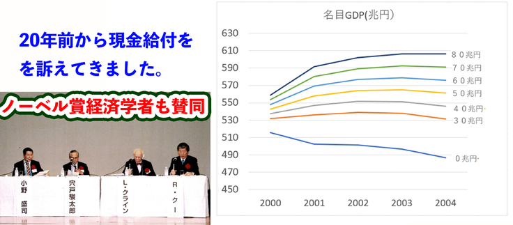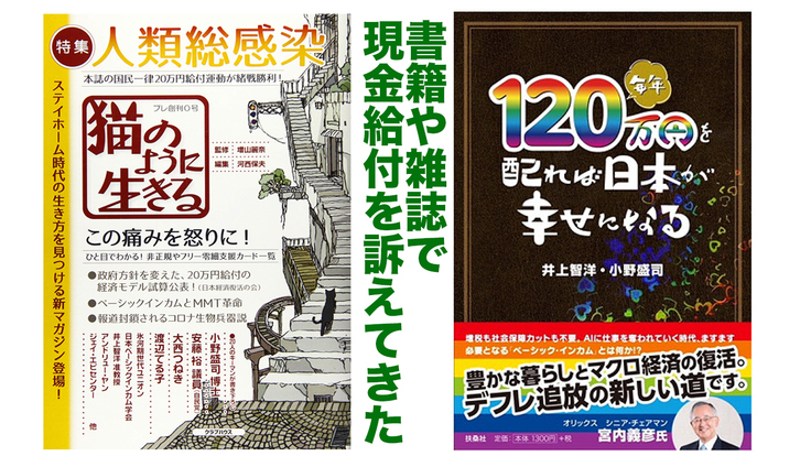 を出版したり、秋葉原テレビで現金給付の重要性を訴えてきました。