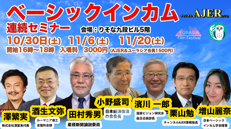 経済学者、経営者、政治家、SNSでのインフルエンサーたちとのベーシックインカム対談を連続してオンラインセミナーとして発信・YOUTUBE等で発信します。