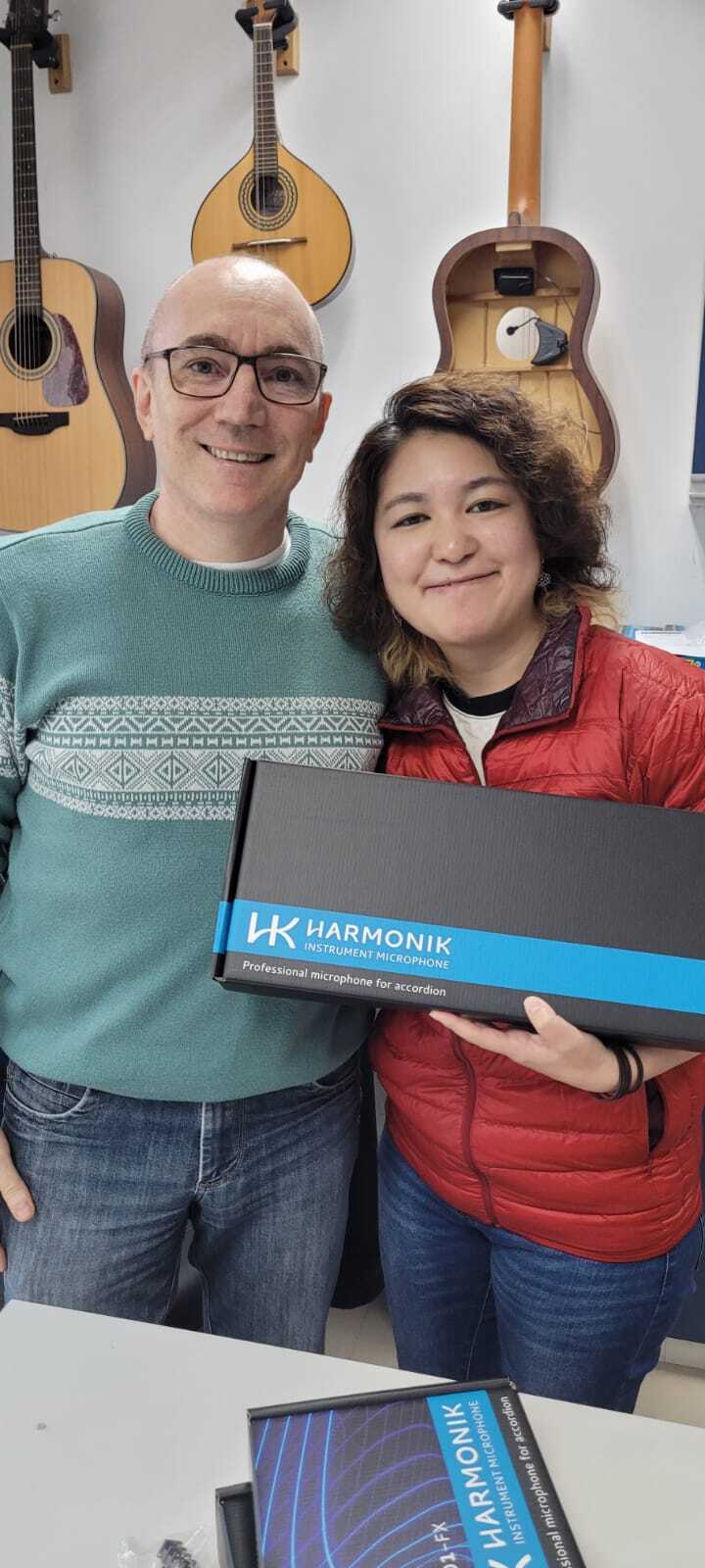 さて、このアコーディオンマイクについて、私が今まで見てきたライブでのアコーディオンはみんな内蔵マイクがついていましたが、ノブがこのメーカーのものとそうでないものがありました。そこで、競合がいるのか聞いたところ、競合ではないが、劣化版を作ってるところがある、とのこと。いいですね、この、相手にもしてない言い方が好きでした。