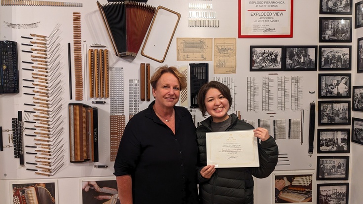 修理のノウハウをシェアして、広めて、世界中でアコーディオンのメンテナンスができるようにしようと。だからこのコースではVictoriaのことだけを話すわけではないし、あらゆるメーカーのあらゆる特徴をお伝えする。こうやって世界中から生徒が来てくれたら、その分その国で不具合があったときにこの人に聞けばいいよ、って言えるネットワークがあることが大事でしょう?と。