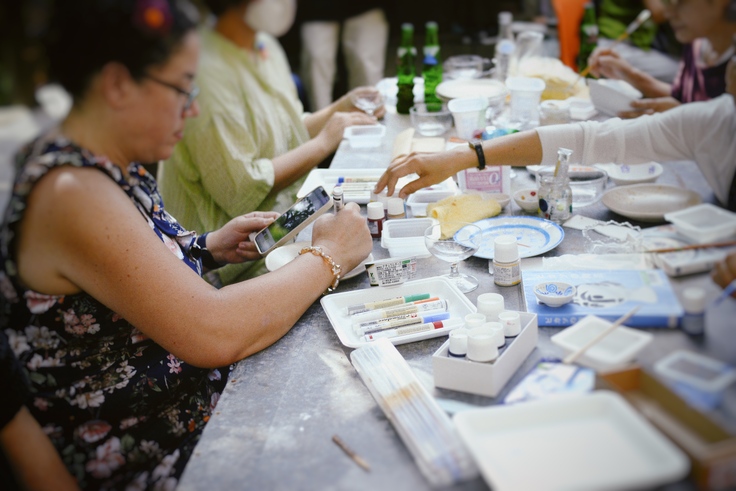 建築やアートを目当てにやってくる人たち。学習支援サークルの学生と子どもたち。