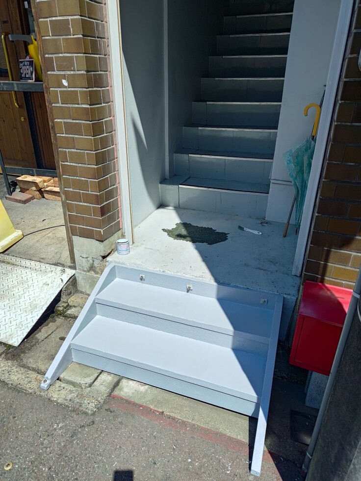 乗ったら折れそうだったステップは切り出した木材で柱を作って補強