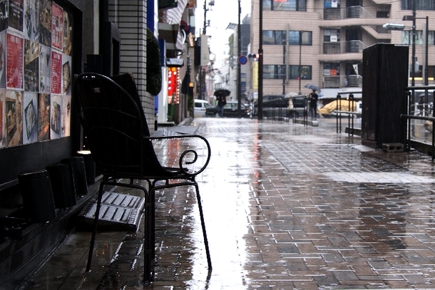 レインコートなら車いすでも安全に雨がしのげるが、広げたりするのが大変。