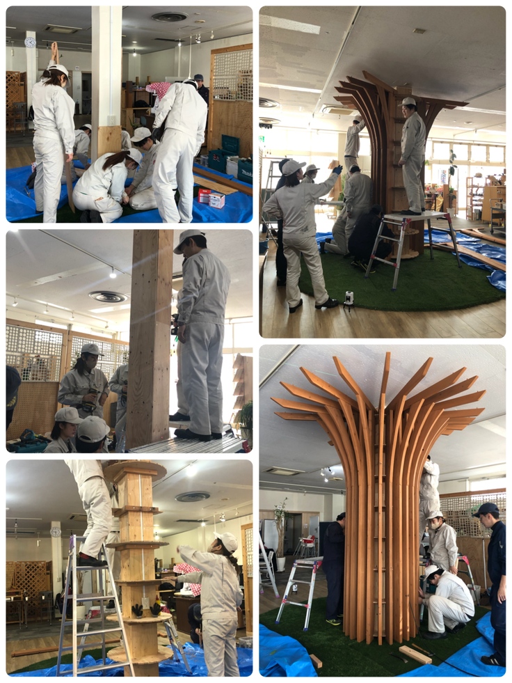 先日運び込まれたパーツを、3月10日、11日で組み上げ、シンボルツリーが完成しました!