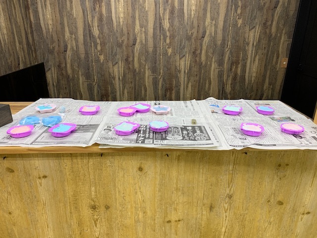 粘土作りみたいに粉をこねていた子ども達です。