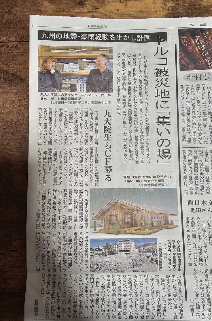Nishinippon newspaper released an interview about Oda Project on December 4th. Professor Suehiro Kaoru and Master 2nd year student Dagoglu Ayse talked about project detail and their motivation to implement the design. Kindly check the newspaper and Nishinippon website for project details.