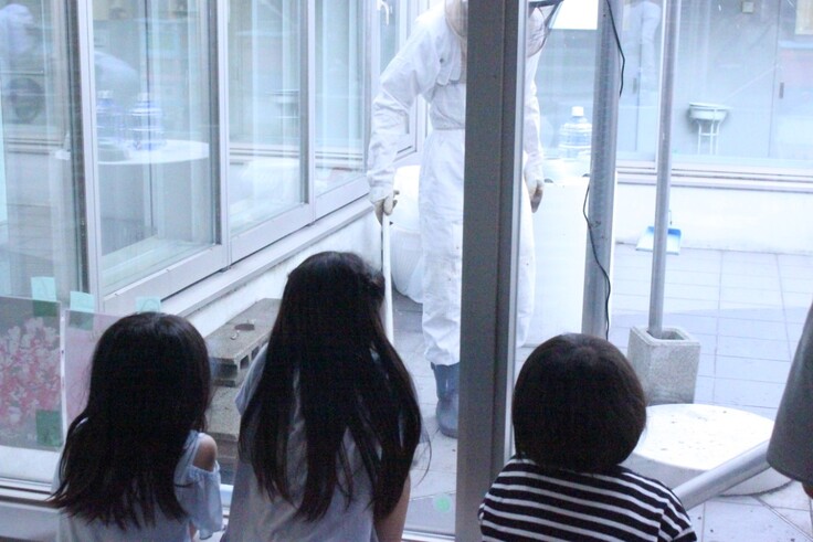 札幌中心部にある大通高校の5階4面がガラスで囲われた中庭空間で、いつでも生徒や教員がガラス越しにミツバチの観察が出来る場所で養蜂活動を行っています。
