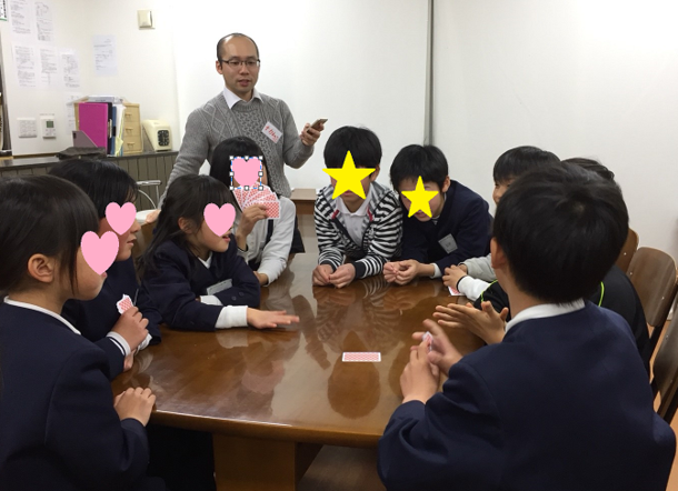 数当てゲーム。1~4の数字が配られ、好きなチームに裏向きで