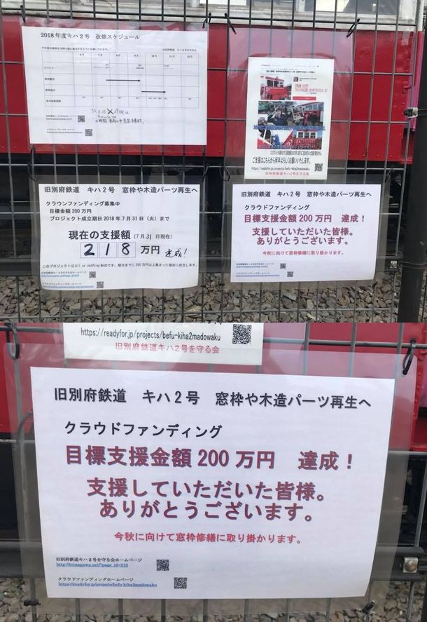 プロジェクト成立終了から1週間たちました。キハ2号現地にもお礼の意をお伝えする掲示もさせていただいております。