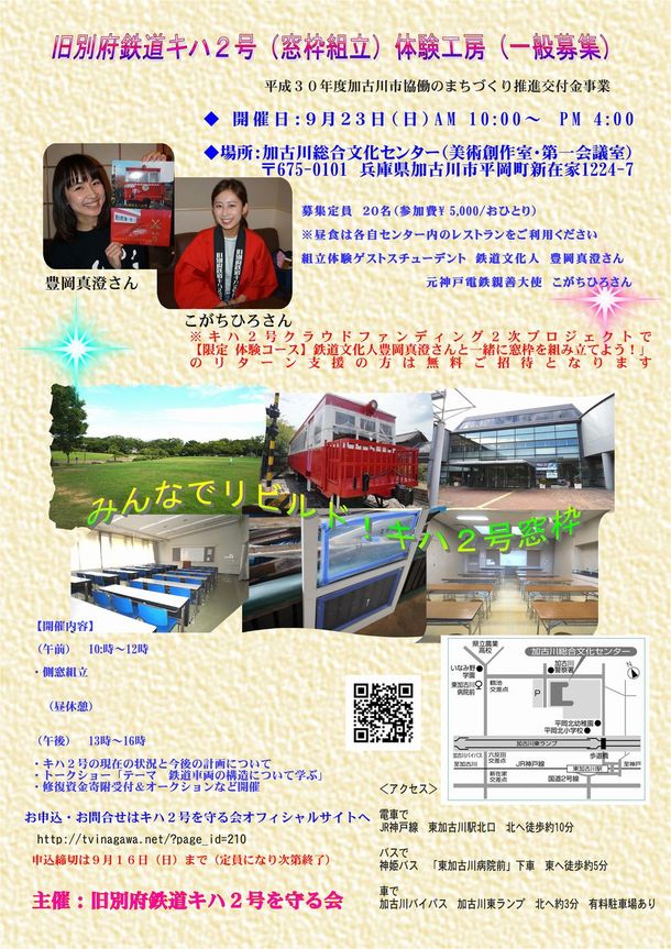 旧別府鉄道キハ2号体験工房9/23開催の参加申込ご案内