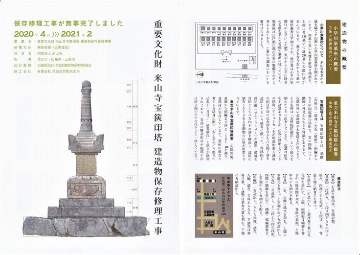 先日、公益財団法人文化財建造物保存技術協会より「重要文化財の工事終了リーフレット」をいただきましたので、併せてご紹介いたします。