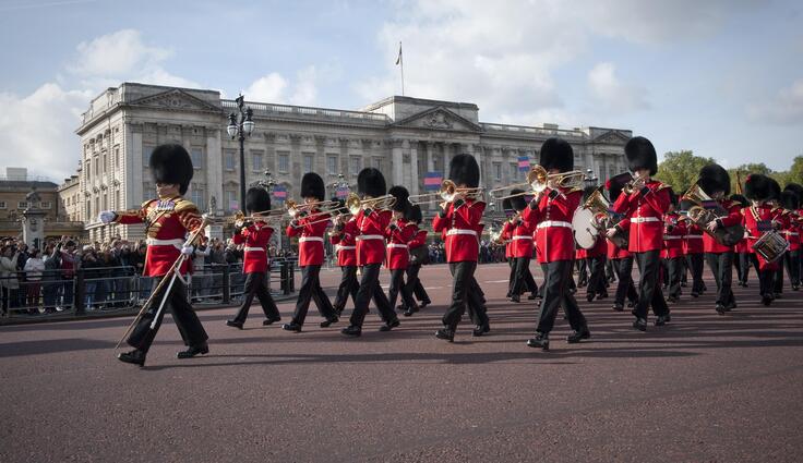 9月19日に執り行われたエリザベス女王の国葬のパレードでは、この第二近衛連隊所属コールドストリーム・ガーズ・バンドが常に中心を行進しました。