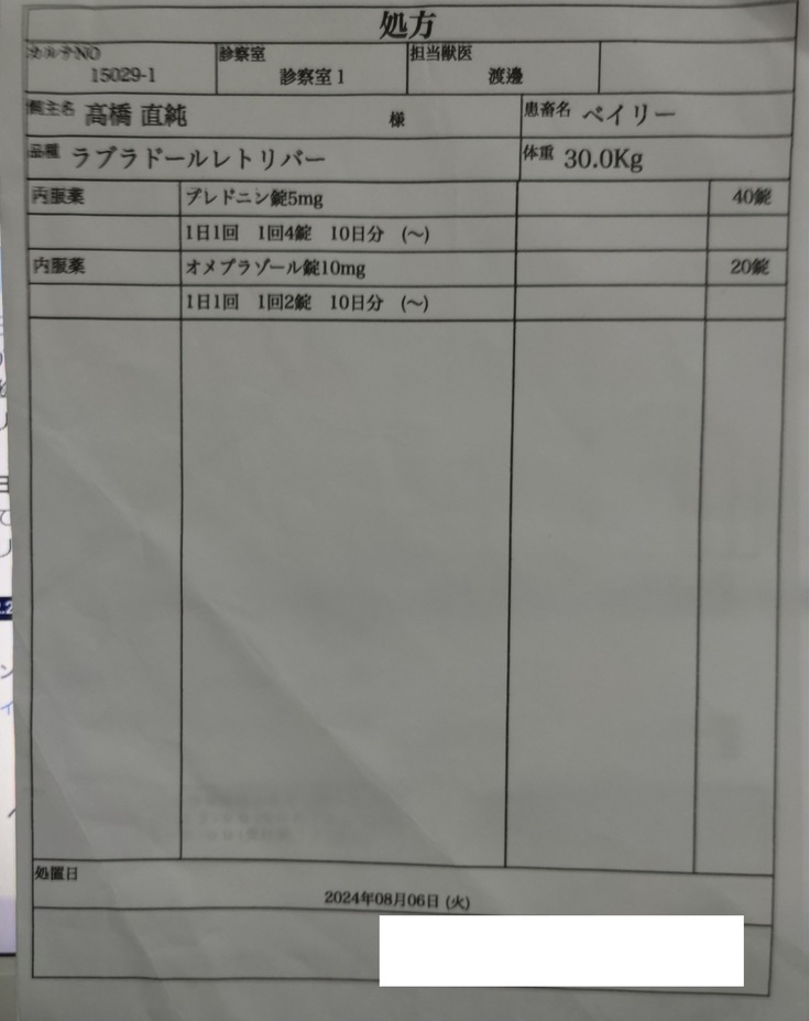 するとステロイドのお薬を貰い万が一のことを考えて、検査ができる病院を紹介すると言われ、私たちは早速高度医療が可能な動物動物病院に診察を受けに行きました。