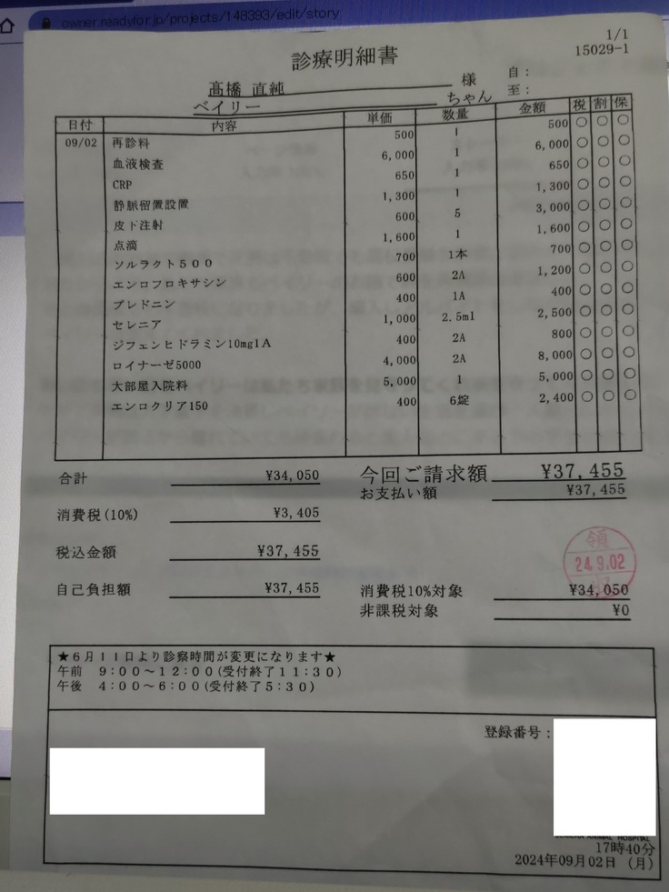 ページ上に掲載している診断書や診療明細書などの資料は全て動物病院から掲載の許諾を得ております。