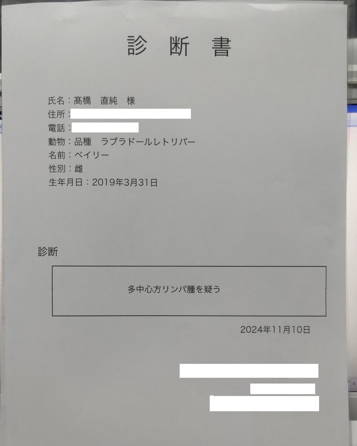 やはり高額医療の抗がん剤治療が必要なんだなと認識し、また元気なベイリーに会いたい。