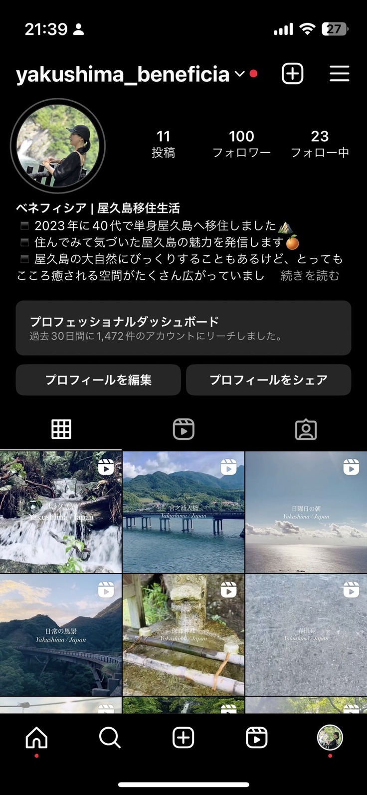屋久島の自然や日常の風景など、屋久島に行ったことがない方にも屋久島を感じて頂けるようなInstagramになっております。