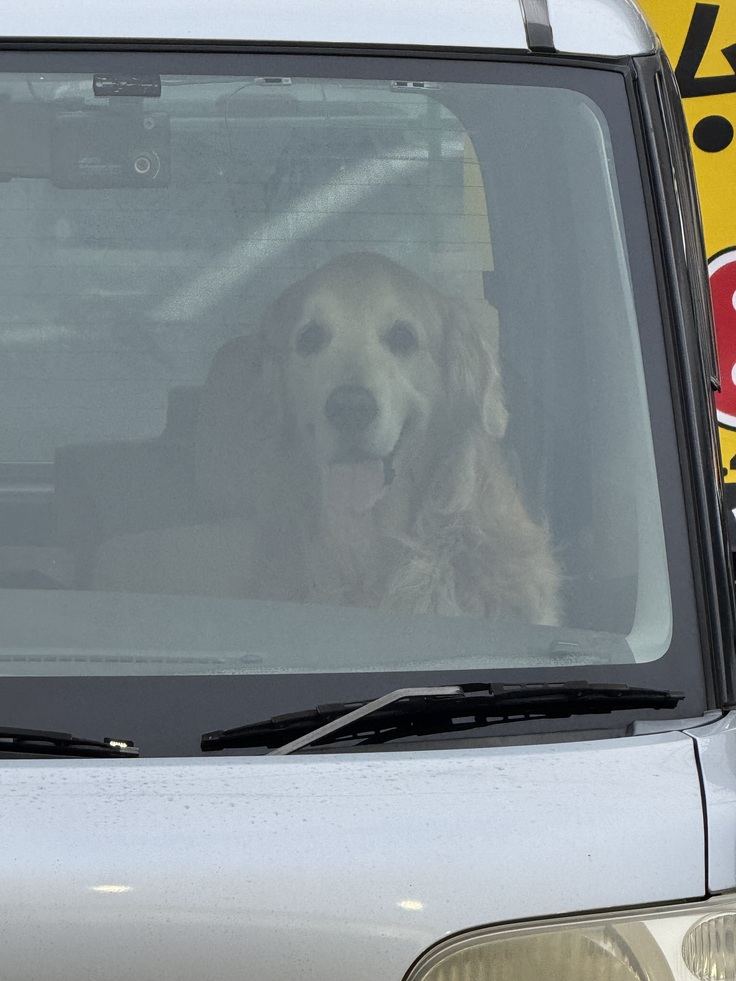 たまに、主人が袋詰めを手伝いに来てくれる時、後ろを振り返ったら、人間みたいに車の中で座ってるベス🤣