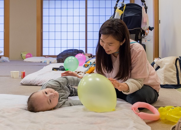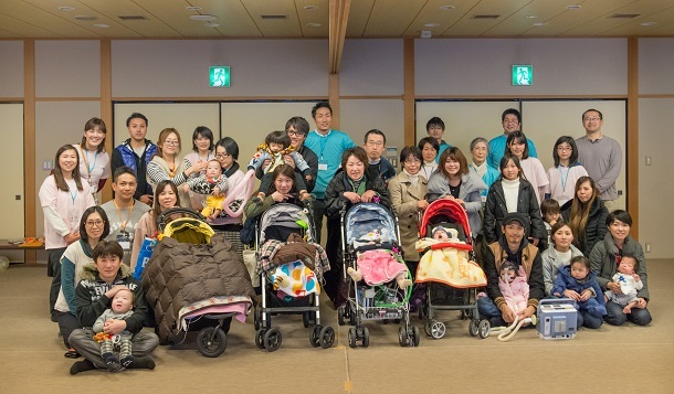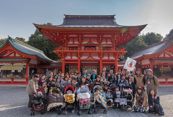 さて、今回はびわこファミリーレスパイトの恒例行事となった「在宅1-2年生の新年会」の様子をご紹介したいと思います。「在宅1-2年生の新年会」は文字通り、NICUなどでの長期入院から退院して「家庭での生活」をはじめて間もない医療的ケア児とその家族を対象に、大津市にある近江神宮(競技かるたの大会で有名なところです)で初詣、もちつき、書き初め、座談会などを通して、家族だけではなかなかできないお正月行事を体験してもらう、在宅生活の新人で不安がいっぱいな家族同士で「仲間」として交流してもらう、という企画です。
