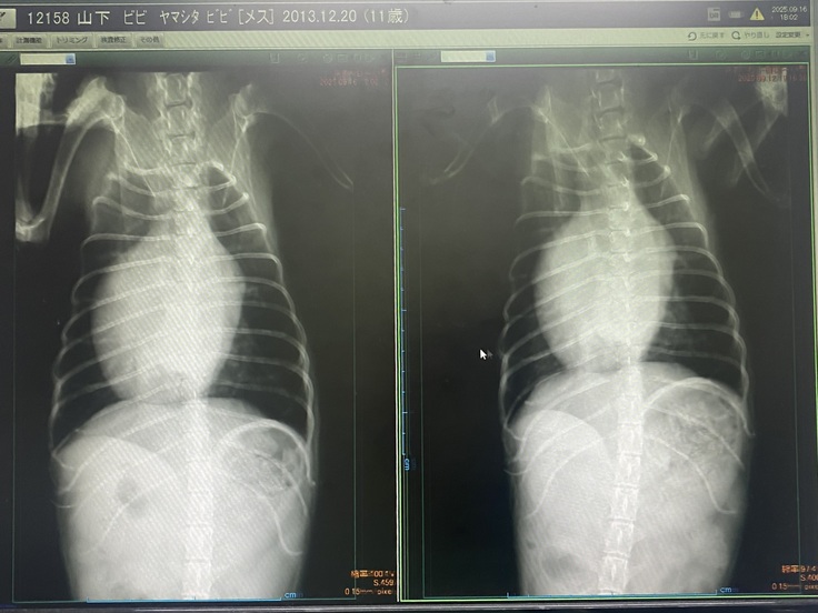 追加で利尿剤を飲ませて様子を見て、次の日にすぐ病院へ行きました。