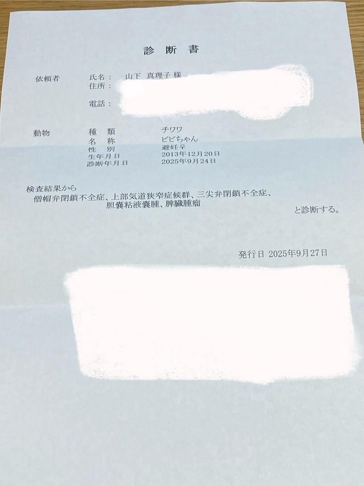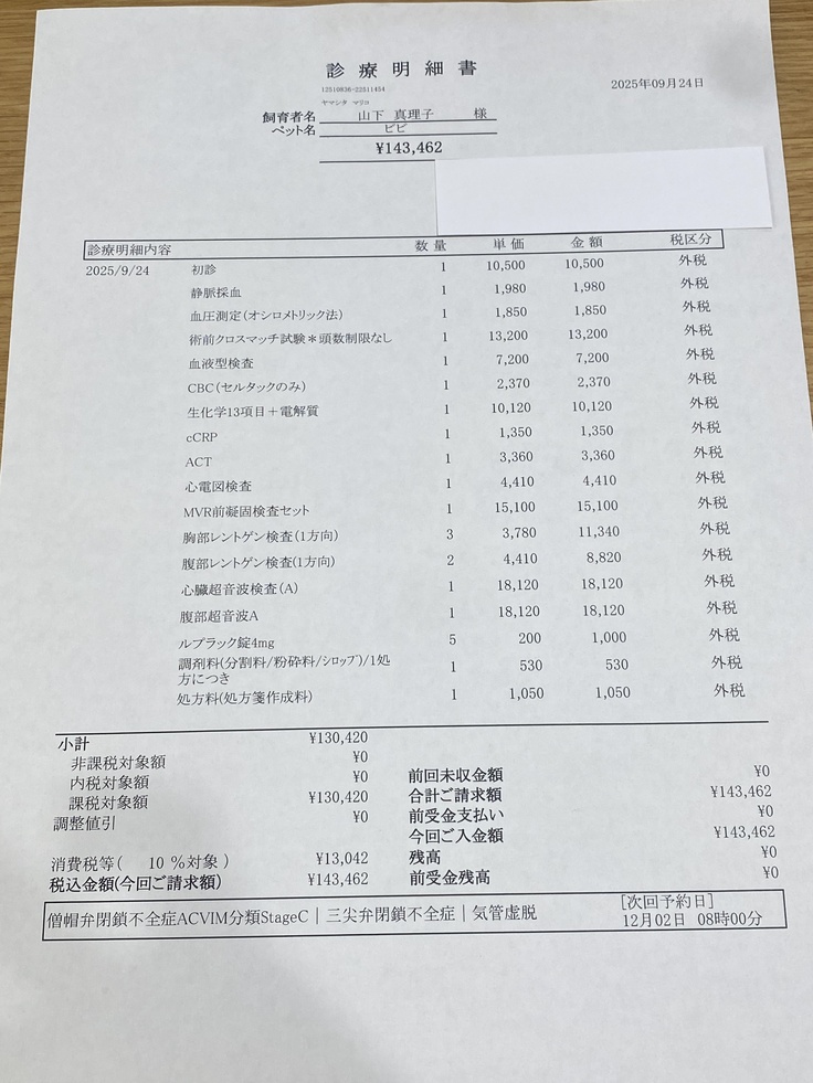 ビビの僧帽弁閉鎖不全症の手術、入院費に使わせていただきます