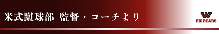 日頃よりご支援を賜り、誠にありがとうございます。春シーズン最終戦となった立命館大学戦は0-49となり、日本一を口にする事すら憚れる結果となりました。現時点でのチームスタンダードの低さを如実に表しています。しかし、このチームはこのまま終わるチームではありません。日本一は極めて困難な道ですが、どこよりも地道な努力を重ね、決して諦めません。そしてその過程で、勝つ事よりも価値のある『人格の陶冶』に努めて参ります。引き続きご支援をいただければ有り難く、どうぞよろしくお願い申し上げます。