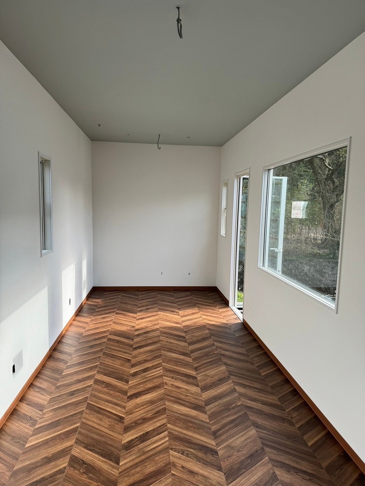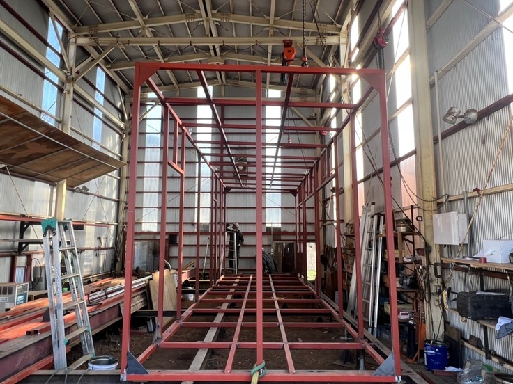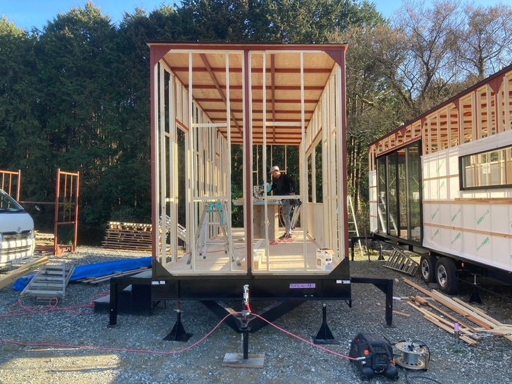 愛知県豊橋市からやってきますトレーラーハウスは骨組みも終わり内装へと進んでまいりました。