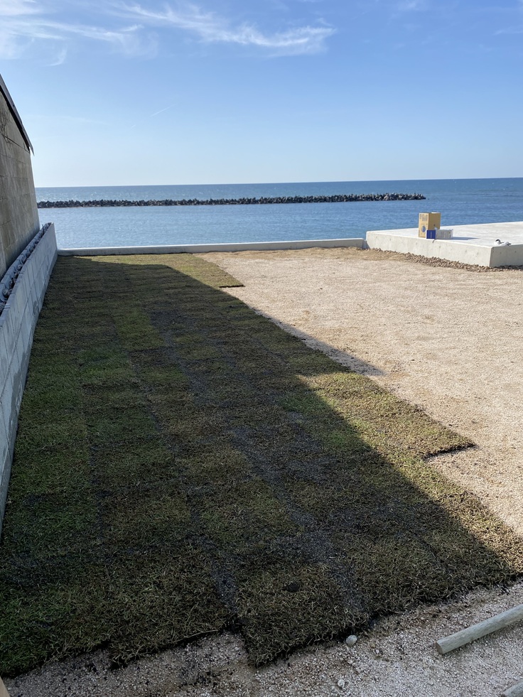 ☝️ハワイを最大限に体現したく、皆さまが芝生の上で海を眺めながらハワイ気分を感じていただくスペースを目指して、初心者ながらプロの方のアドバイスをいただきつつ、自分たちで天然芝を植えました🌱こちらはまだ植えている途中ですが、もうすぐ完了予定です✅