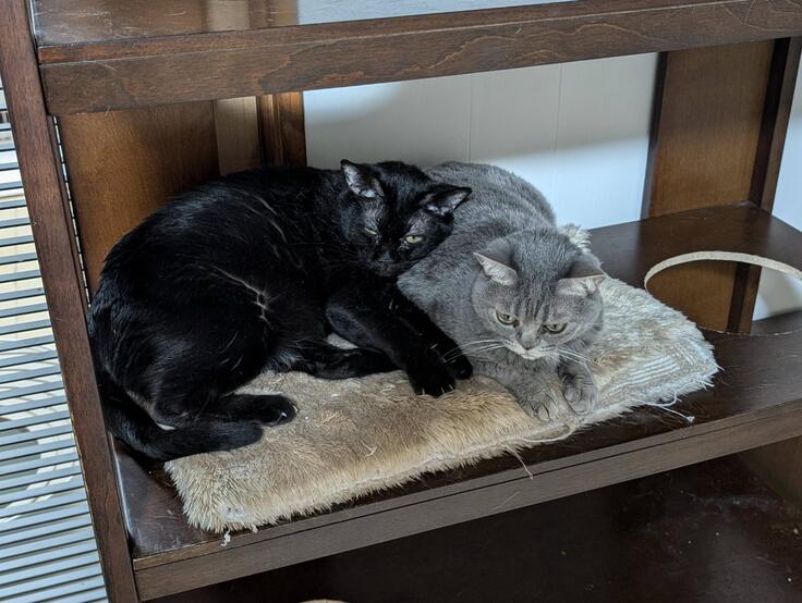 この家族、唯一のグレー猫『あんず』と黒猫『ボス』