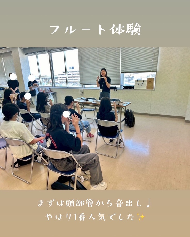 体験したのは、フルート、クラリネット、サックス、トランペット、ホルン、トロンボーン、打楽器。