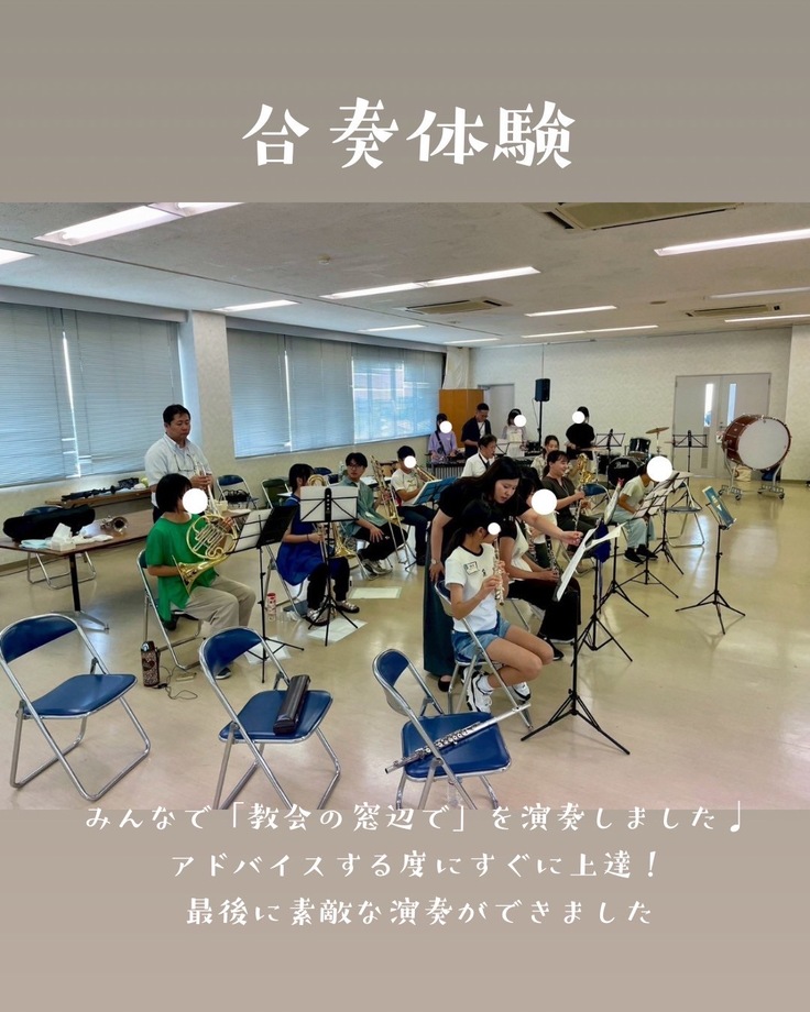 8月16日(土)、初心者対称の楽器体験会と、経験者対称の合奏体験会、入団説明会を行いました。