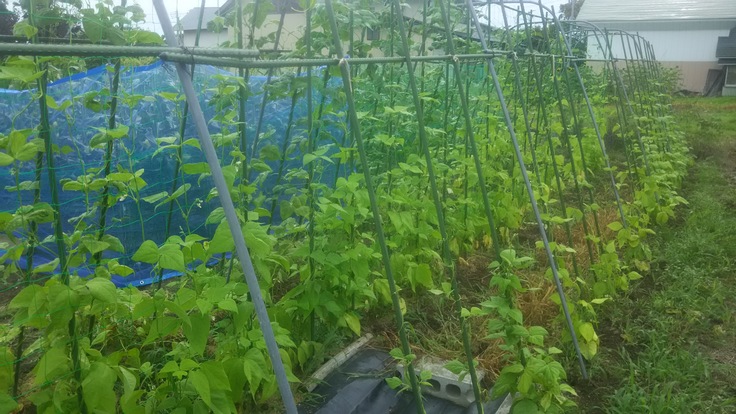 ↑ツル性の豆。支柱やネットでツルを誘引する作業が必要(これが面倒)