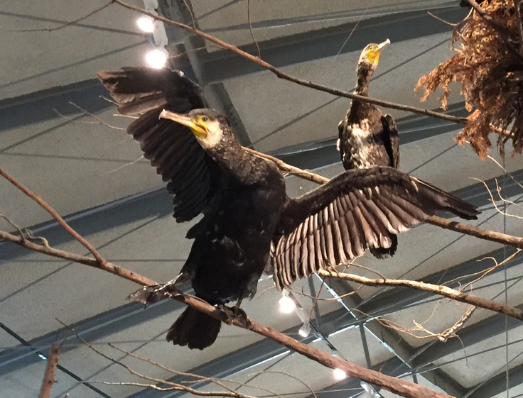 琵琶湖博物館の展示室には、琵琶湖や滋賀県でみられる鳥を紹介するコーナーがあります。このツアーでは、複数ある鳥の展示を回って、琵琶湖や滋賀の鳥を存分に堪能していただきます。たくさんの剥製(はくせい)を一気に見られる展示、県の鳥であるカイツブリが泳ぐ水槽、そしてカワウという人との関わりの深い鳥についても紹介します。室内で剥製をじっくりながめた後には、実際に琵琶湖に浮かぶ水鳥たちを観察する予定です。