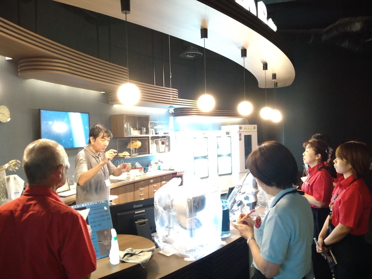 展示に詳しい展示交流員は、実は、毎朝、展示の見どころや最新の研究で分かってきたことなどを学芸員による「モーニングレクチャー(展示の解説)」を聞いて勉強しています。展示交流員の一日は、展示に関する勉強から始まります。ぜひ、琵琶湖博物館に来て、展示交流員と楽しく交流してみてください!